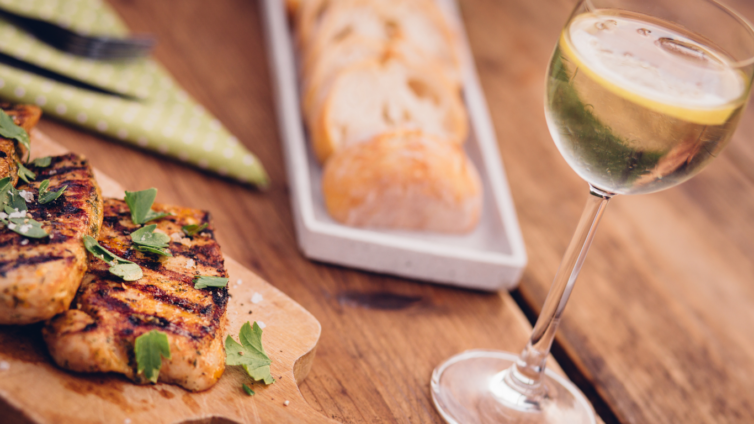 Grilled or roasted pork chops find a perfect partner in a glass of Chardonnay. The wine’s acidity balances the pork’s slight fattiness.